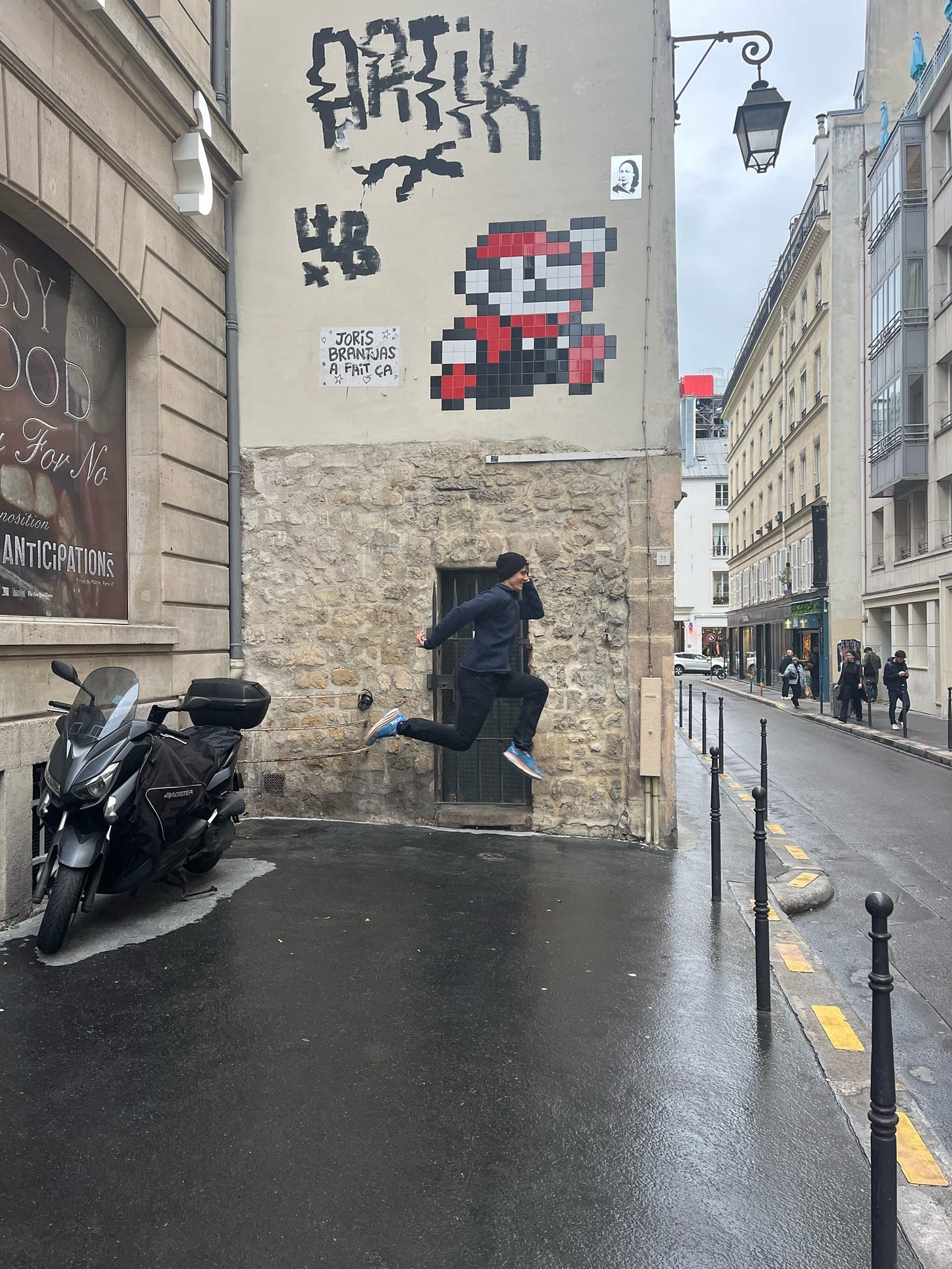 We walked around some more to the Pompidou Centre, where they have delicious crepes (thank you for showing me that crepe place, Manon!) and a sick view of the city from the top. There was also an amazing Mario mural, and Tatiana snapped this gem.