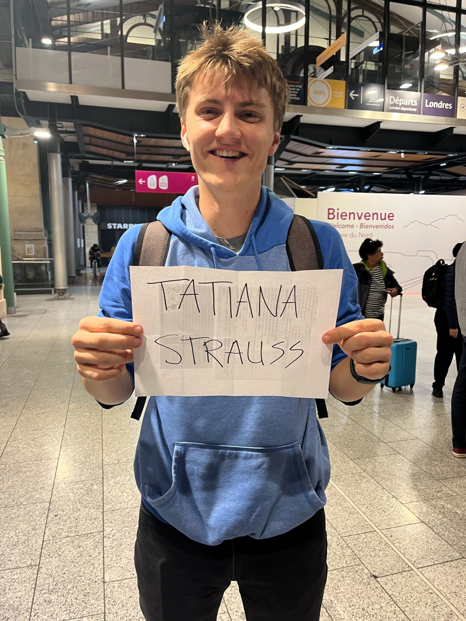Tatiana arrived from the Eurostar, where I had arrived back less to Paris less than a week prior! Of course, I had a sign waiting for her by the exit of the train. Was it written on the back of a French A1 worksheet?