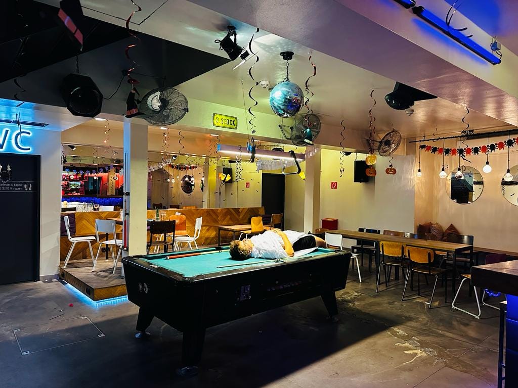 Carlo and I went back to the party room to play another 2 games of pool (I had lost the bedsheet at this point and was wearing Carlo’s shirt). We had a great time. I miss you, Carlo!