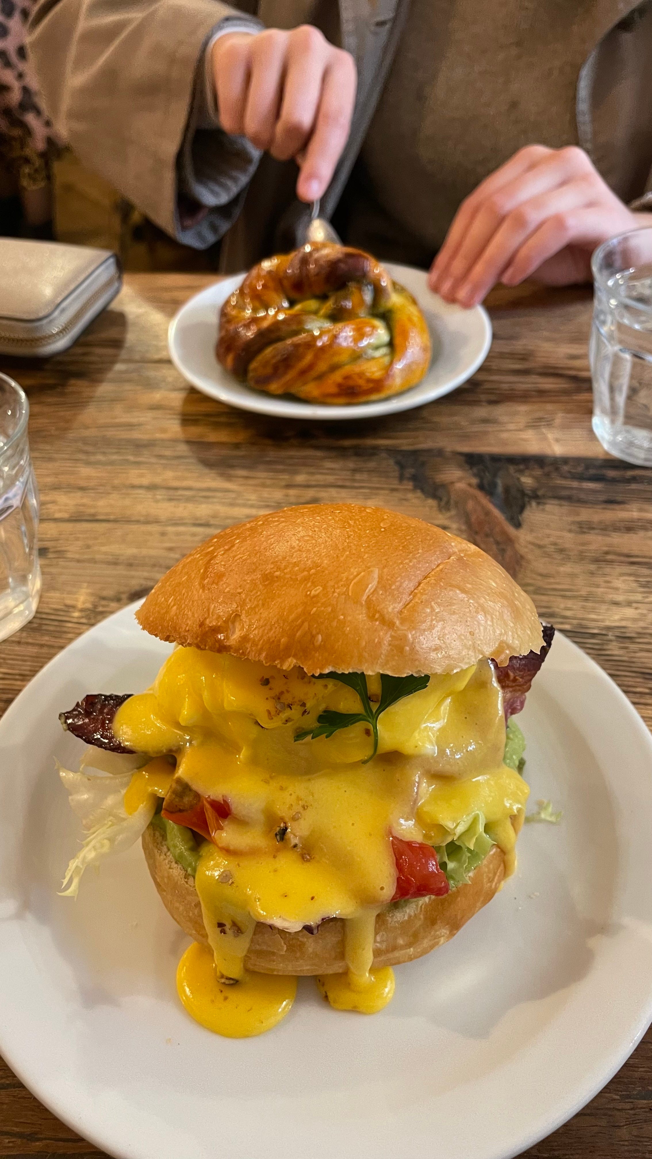 Thursday means Czech lunch, so I met up with Magdalena for our weekly ritual. She showed me the Czech center right near Sciences Po, then we headed to a nice cafe near Sciences Po. I got a burger Benedict egg thing for breakfast.