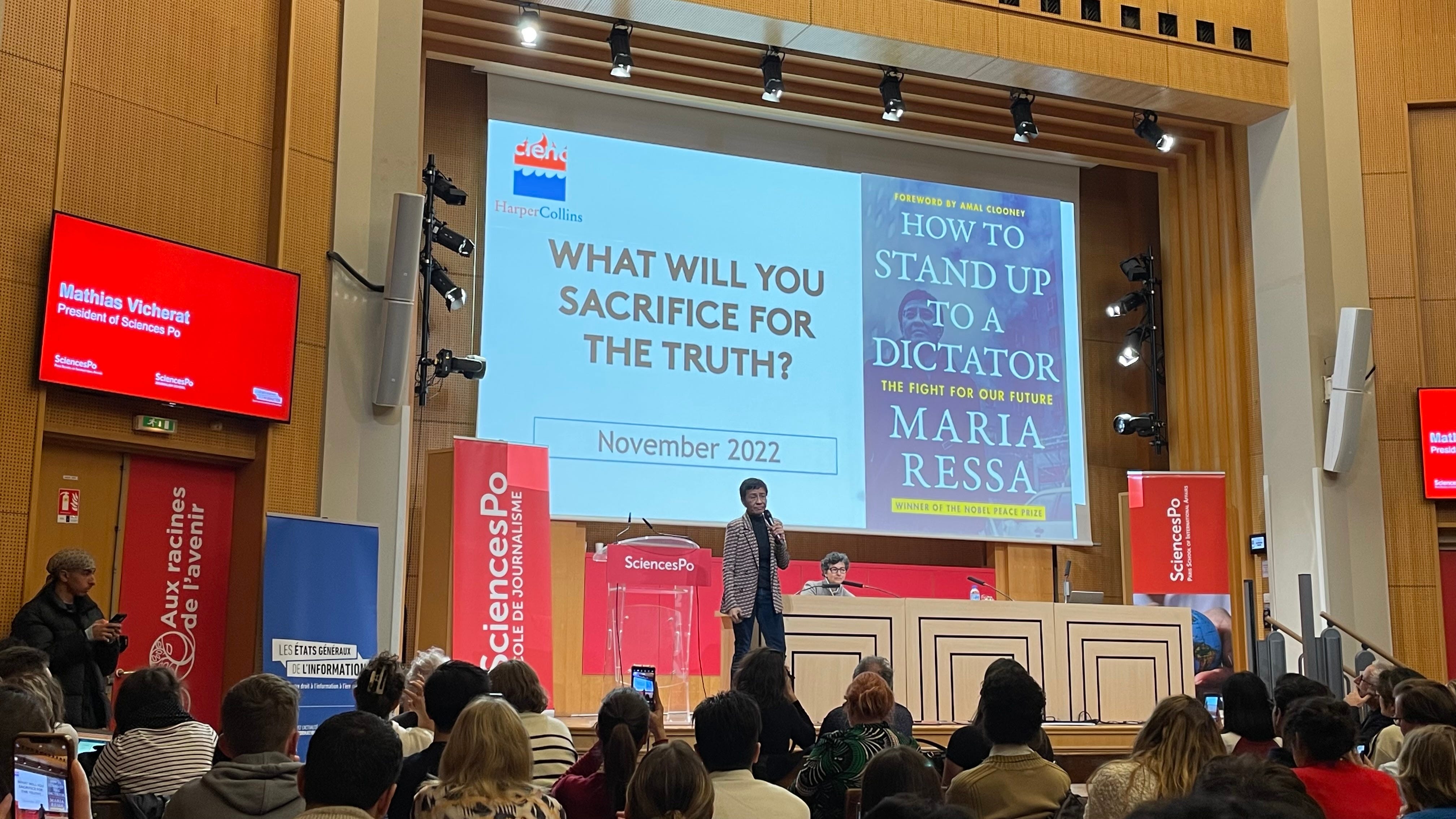 There was a super cool event at Sciences Po today — a guest lecture by a Nobel Peace Prize laureate! The laureate was Maria Ressa, who won the 2021 Nobel Peace Prize for her journalism in the Philippines. It was incredible to hear her speak about her career and learn more about the industry, especially in the context of autocratic countries.