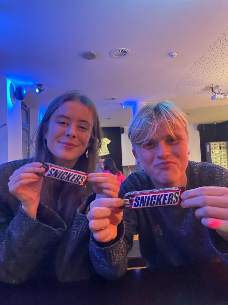 After buying some chips (great shout there, Lara!), a chocolate bar, and some Snickers (I know that’s not the healthiest combination but it was the best they had), we headed back to the hostel lobby to eat our “food” and chill some more.