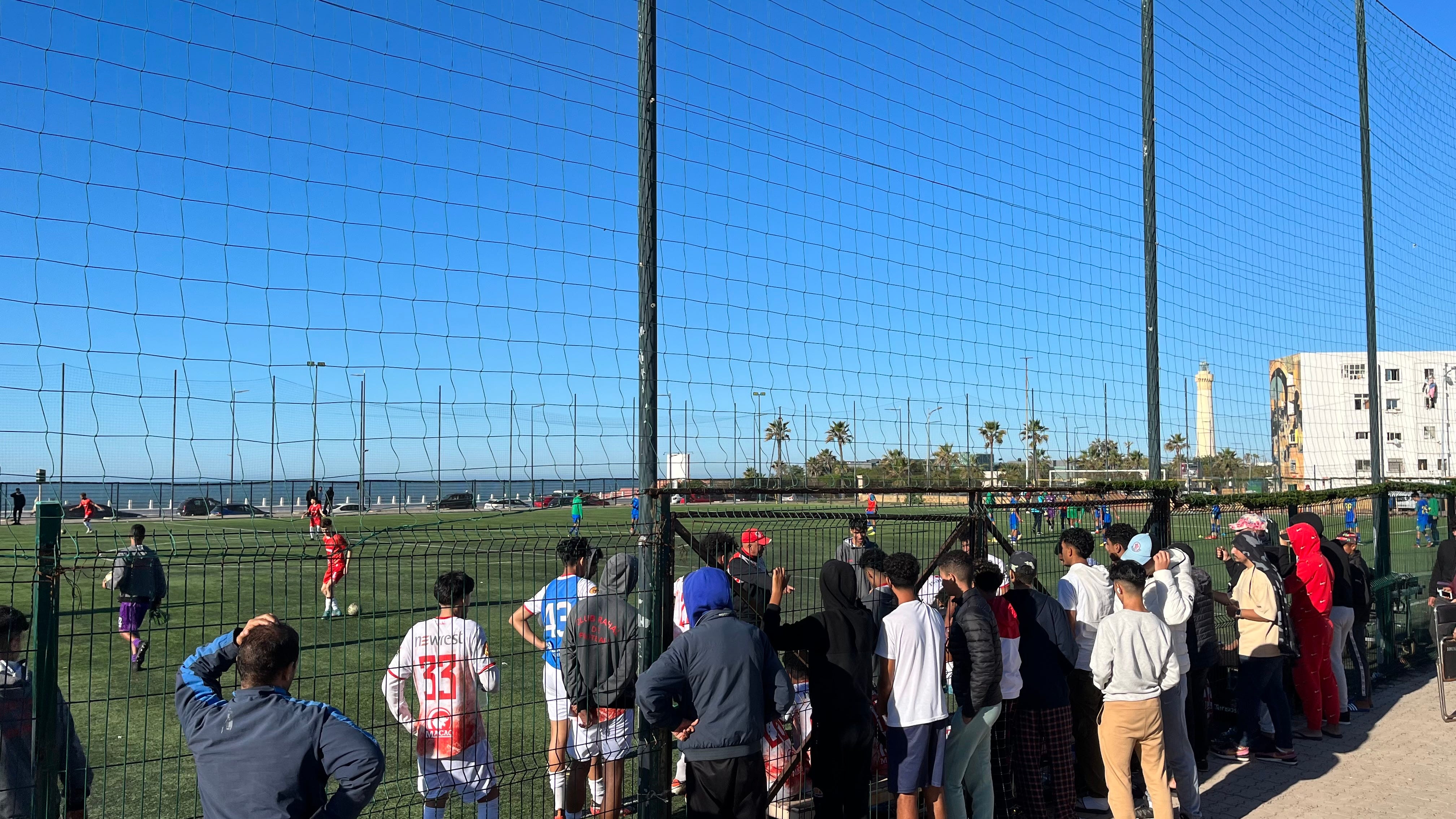 The game itself was amazing, with some of the best footwork and passing I have ever seen. I was rooting for the team in white, since they were playing better and cleaner than the team in blue. I later learned from the Arabic kids that the team in white was the second-best youth team in all of Casablanca.