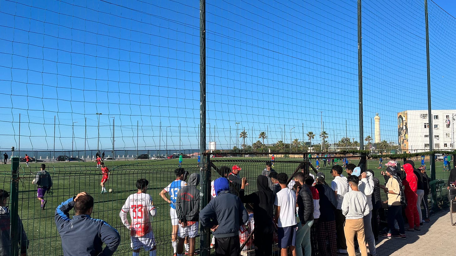 A ton of Arabic kids were watching the game too, and were definitely wondering who in the world this white person was and why I was there (literally every single other person there was Moroccan and chatting in Arabic). Eventually, one of them braved up to ask me where I was from (they thought I was French, because most of the white people that visit Morocco are French), and I decided to tell them that I was Russian because I figured that Moroccans would look more favorably on Russians than Americans.