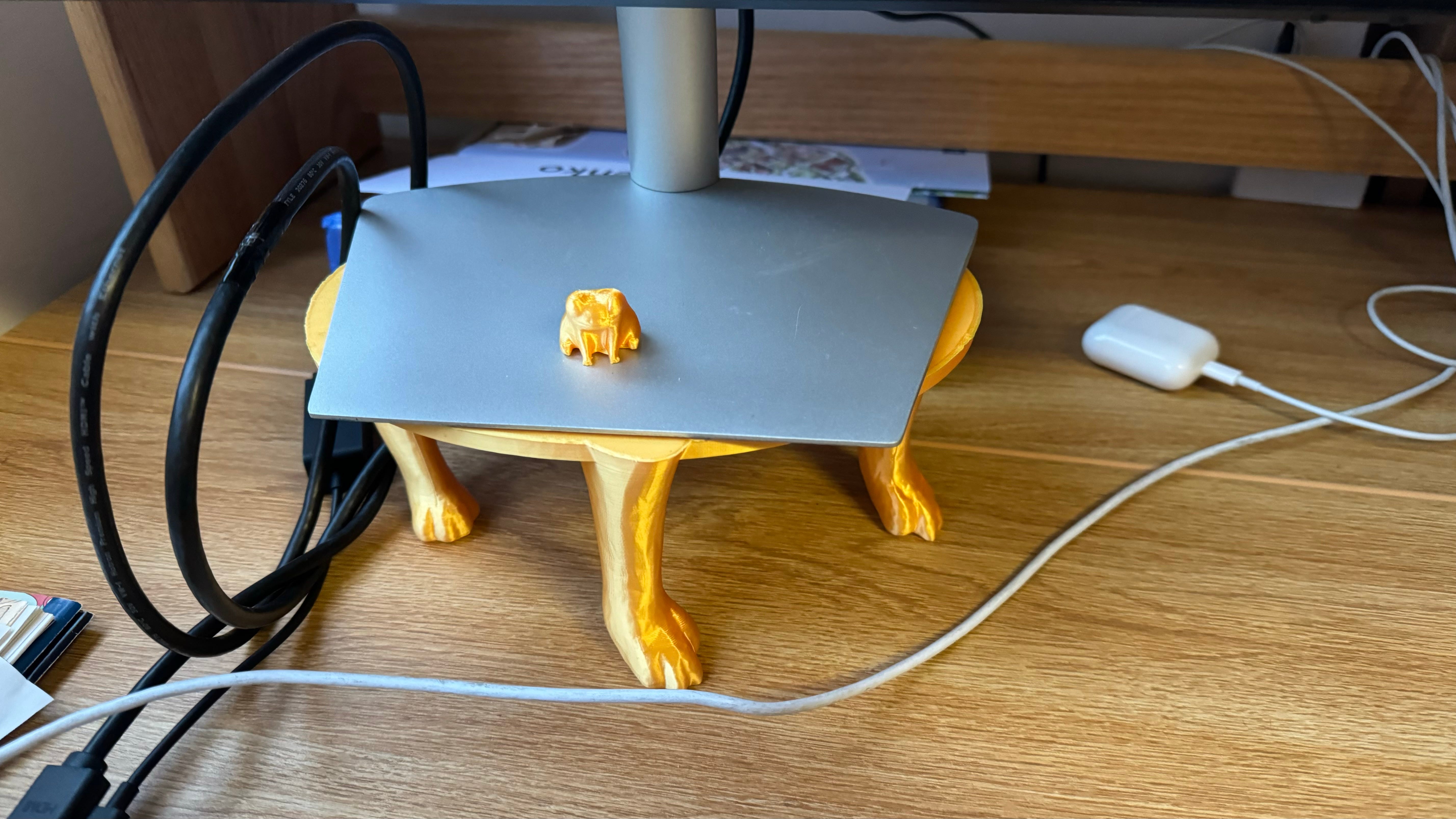 I also have brought back my amazing Dell monitor to do my CS homework, and have been 3D printing a bunch of things for free at the Makerspace in the engineering department. One of the things I printed was a stand for my monitor (so that when I open my laptop, the top of my laptop is below the bottom of the monitor), and it’s a cat leg stand! So so exciting!