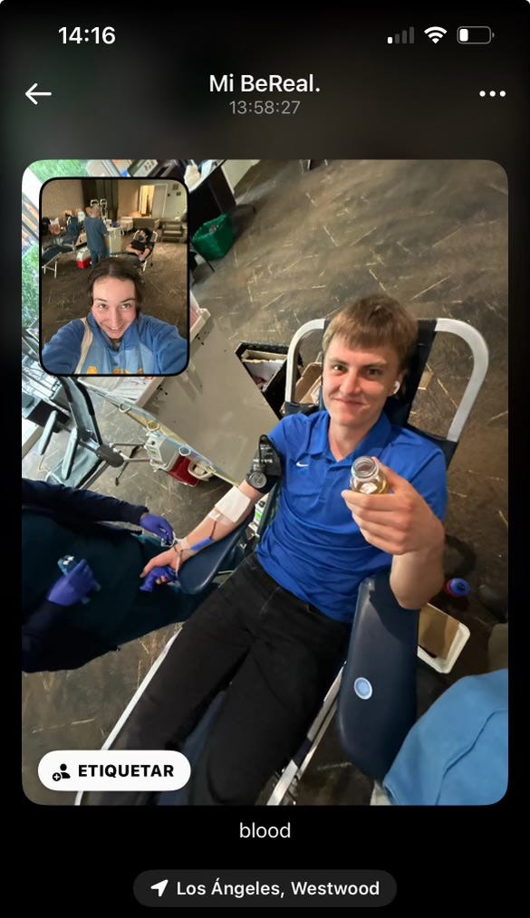 We got dinner the following Friday night, pregamed for our respective parties after the dinner together, really really hit it off, then spent probably a collective 15 hours over the course of the weekend as we donated blood together, hung out, studied, and chilled a bunch.