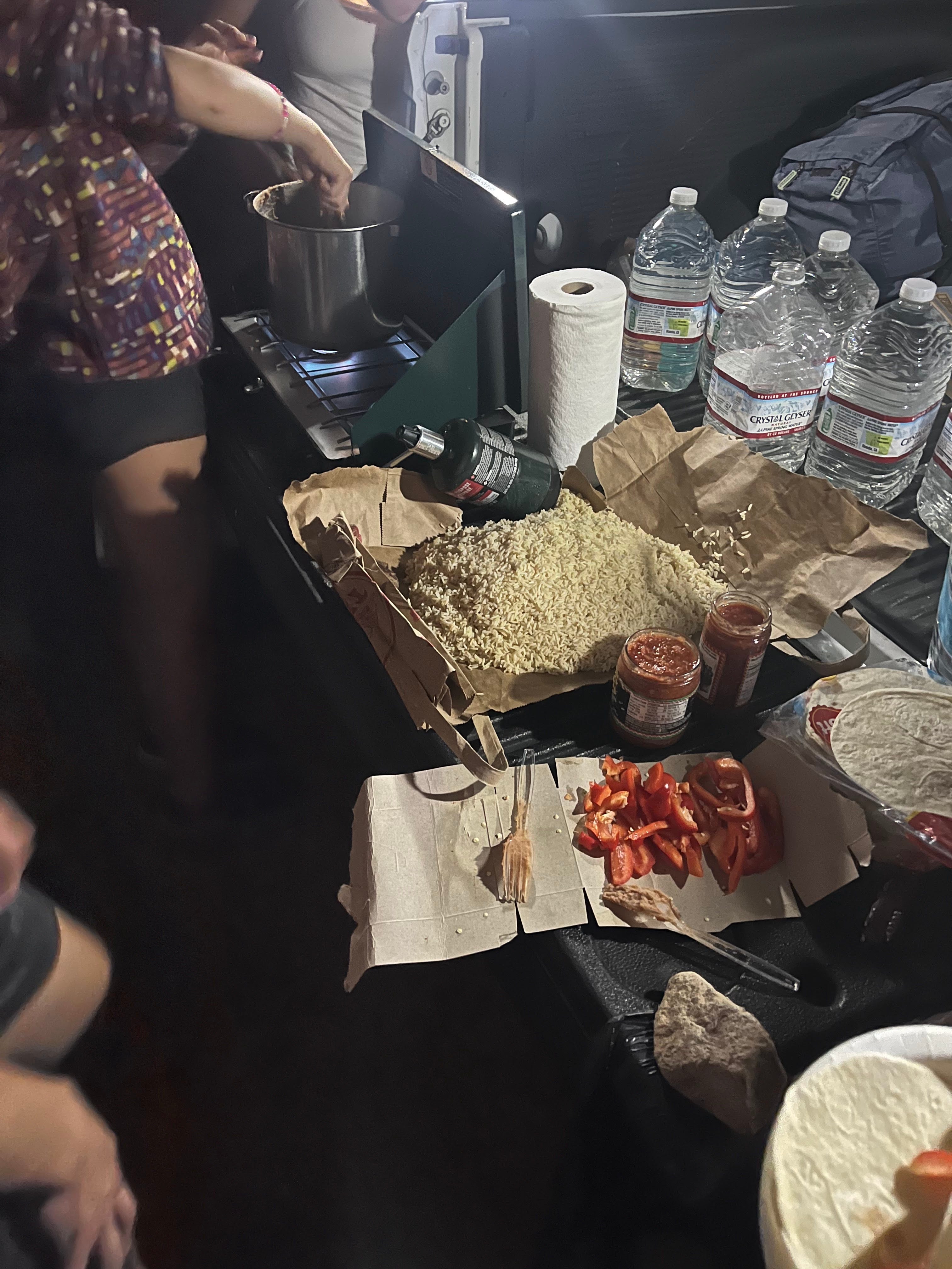 I have never been more proud of a camping dinner I’ve helped cook in my entire life — it was SO delicious (we were also hungry and tired, so our standards were much lower than normal lol). We made tacos, and the perfectly cooked rice dumped onto a “plate” made from a ripped Trader Joe’s bag remains to this day the greatest rice I have ever cooked in my entire life.