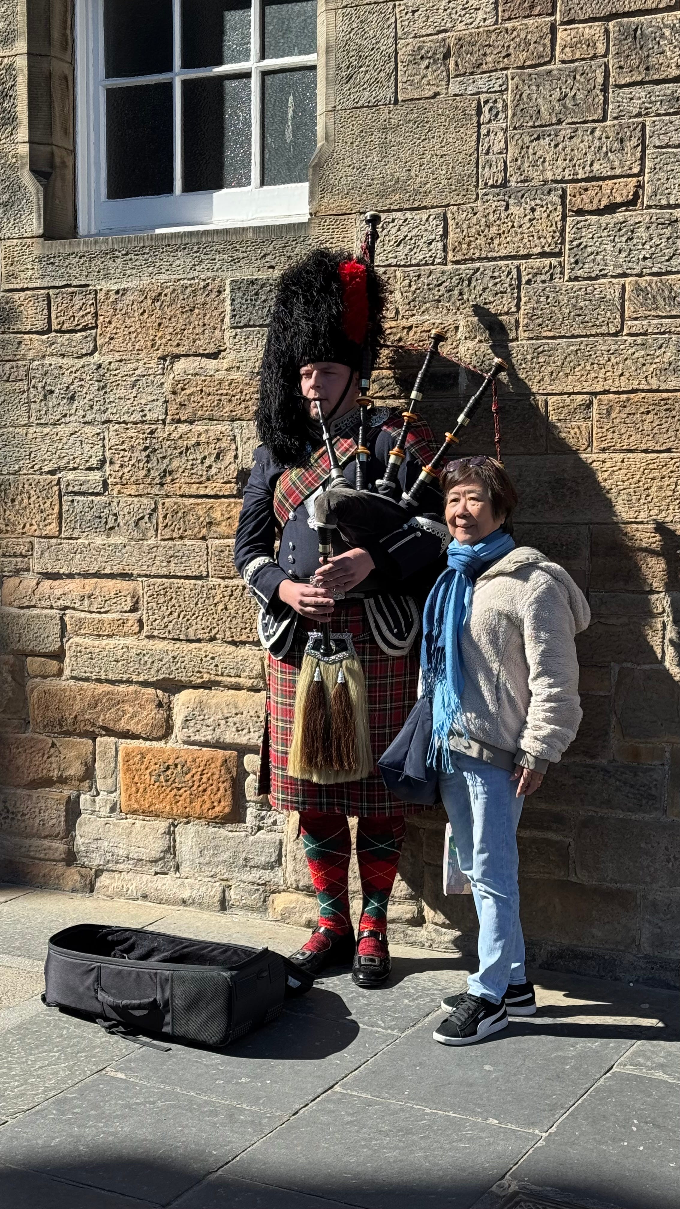 After a failed attempt to get into the Edinburgh Castle (the tickets sold out weeks ago, so that solved that problem), I headed back down the Royal Mile to see that aforementioned Harry Potter store. Along the way, I saw the funniest sight of the entire trip so far: a tiny Asian lady taking a picture with a tall Scottish man. It was quite the scene: