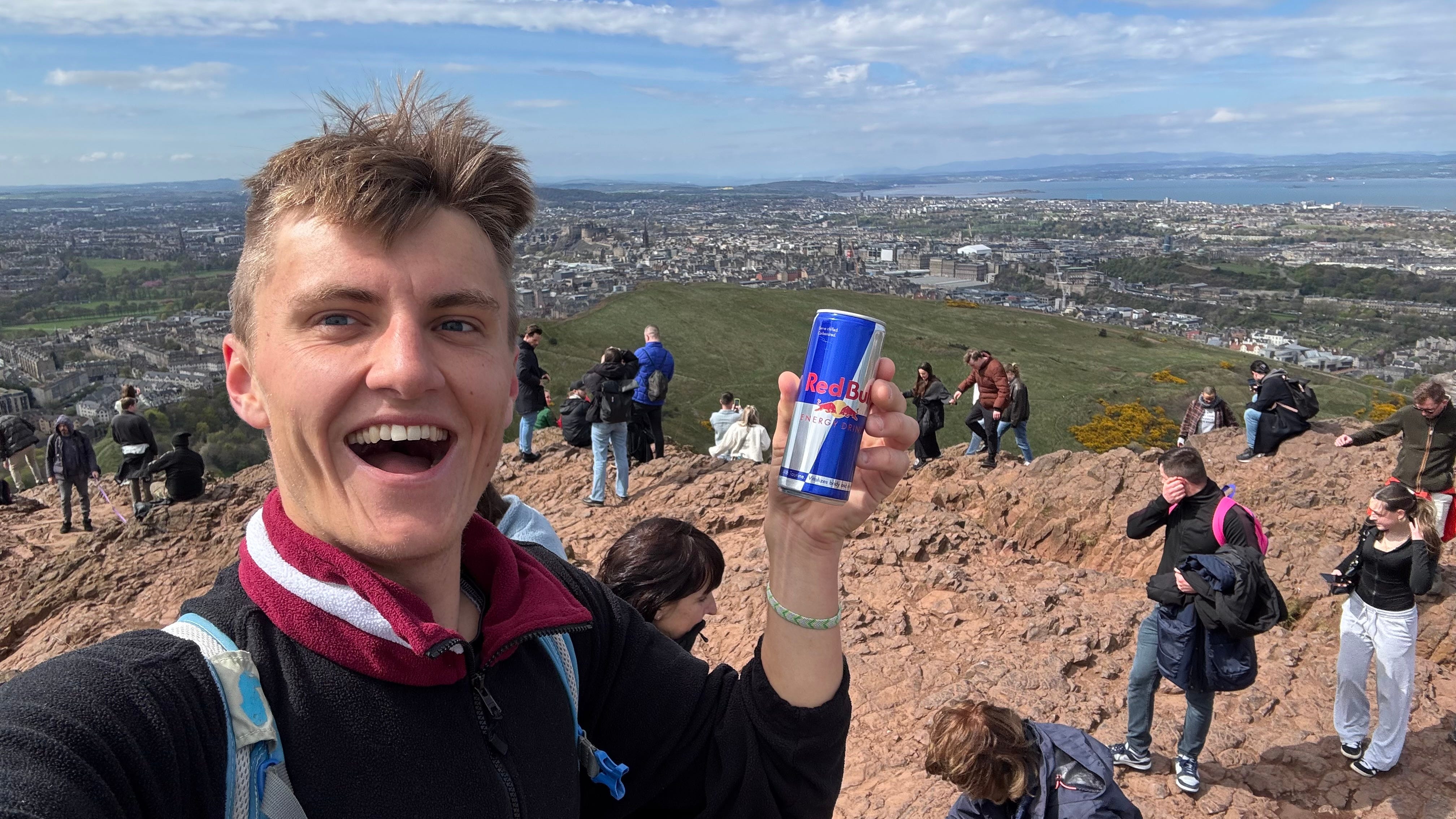 I started off with a scenic hike up Arthurās Seat, the extinct volcano in the middle of Edinburgh with 360° views of the entire city. I walked up a random scramble approach straight up the main face, took in the views from the top, and walked quickly down the touristy path. On the descent, I also found a very well-hidden D5/T4.5 geocache in the cliff face, then chilled on the grass to read some more of the book and enjoy the really nice weather!