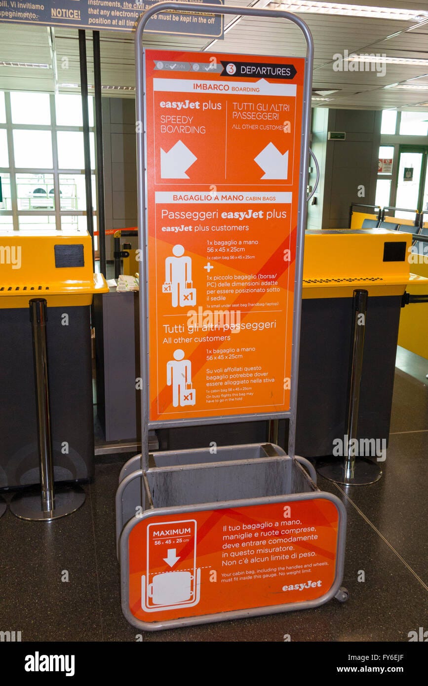 The way they check your bag size is through a much-dreaded bag-size-checking sign, which is at the front of every easyJet flight. Every bag must fit into this bag checker, else you’re fined a million euros: