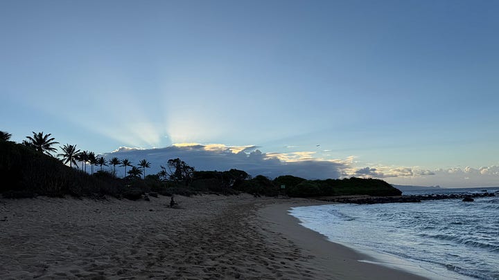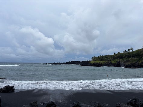 The stay was an absolute 11/10 experience. Ron and Shawn hosted us, both super friendly and fun. They’d met in Texas, lived all over the US, and now have a lovely house and property in Maui. Their place has one main house (where they live) and a guest house with three bedrooms; Brooke and I got one all to ourselves, with a PRIVATE BATH AND SHOWER. Everything was so comfy and cozy and altogether magical. I felt like I was hacking the system by staying there.
