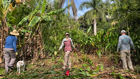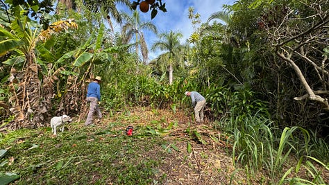 Clearing the land involved chopping down crazy amounts of vegetation, dragging it over to the driveway, and loading it into their pickup truck to drop off at the Central Maui Green Waste Dump. Some of those vines were crazy annoying, but we did some great work together and managed to clear the entire area. Plus! I took some timelapses of our work, which you can check out here, here, here, here, and here.