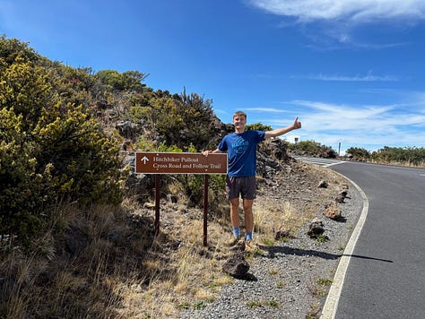 We did a work stay with Ron and Shawn, and worked ~3-4 hours each morning, somewhere from 8:30 to noon each day. Some days we ended earlier, some later. Brooke and I stayed at their house for 9 days, and worked on 7 of them. We had two full days off; during the first day, we hitchhiked across the entire island to relax on some West Maui beaches; the second, we hitchhiked up to the top of Haleakala (the giant volcano on Maui) and hiked in the summit crater (technically an erosional valley, but whatevs). Both days were fantastic!
