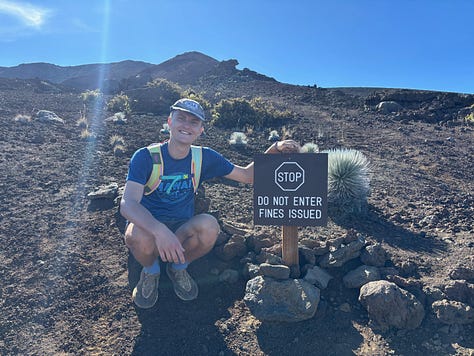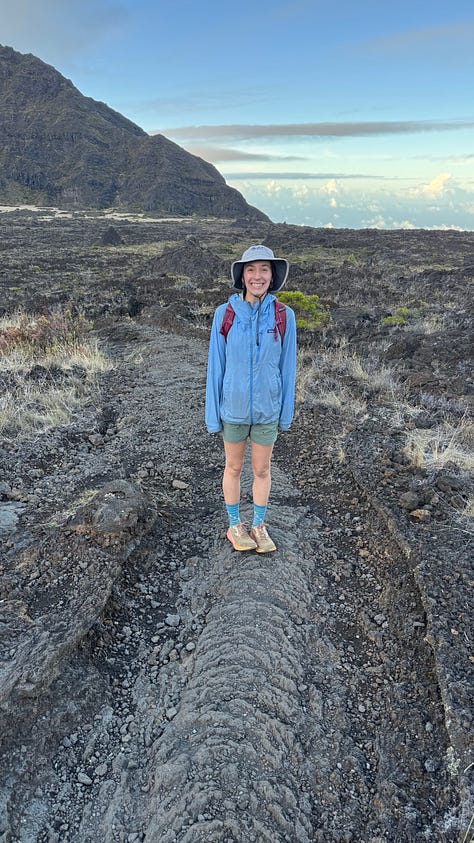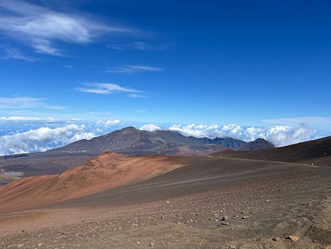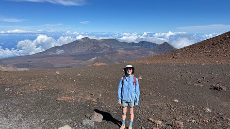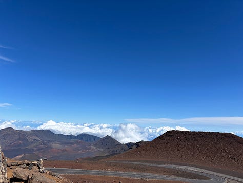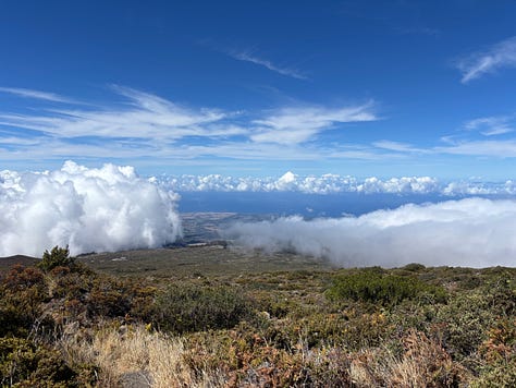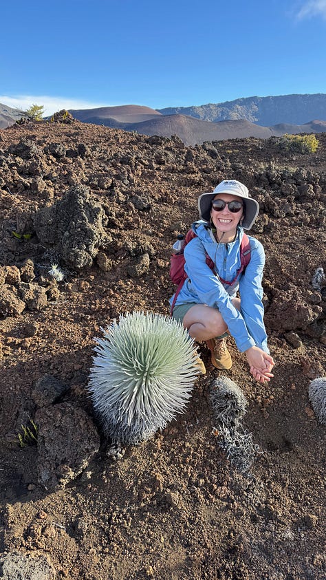 On our two full days off, Brooke and I went to 1) the beach, and 2) the top of the Haleakala volcano for some hiking. The beach experience was great; Ron and Shawn were driving to Lahaina, dropped us off at the beach, and we spent the day hanging out there before hitchhiking 1.5 hours back to their house in 4 separate cars (rock climbers do multi-pitch traversals, but we had a multi-HITCH traversal!). The snorkeling on the beach was amazing (I saw my first ever needlefish and lots of turtles!), and the hitchhiking experience was so fun; on that trip across Maui, we got picked up by 1) a local high school canoeing coach, who told us about her husband’s canoe race last week from the island of Molokai to Oahu, a distance of 44 miles. His crew didn’t win because “the Tahitians came and they’re really good at this sort of thing”, 2) a pickup-truck-driving painter, who let us sit in the back of the pickup truck with all the crusty paint cans (it’s legal to sit in the back of pickup trucks in Maui!), 3) an upcountry local, and 4) Stan, a super chill Hawaiian dude who ALSO let us sit in the back of his pickup truck! An amazing hitchhiking experience! Across the entire island is 1.5 hours, when a bus would’ve taken 2.5 hours to go half the distance!