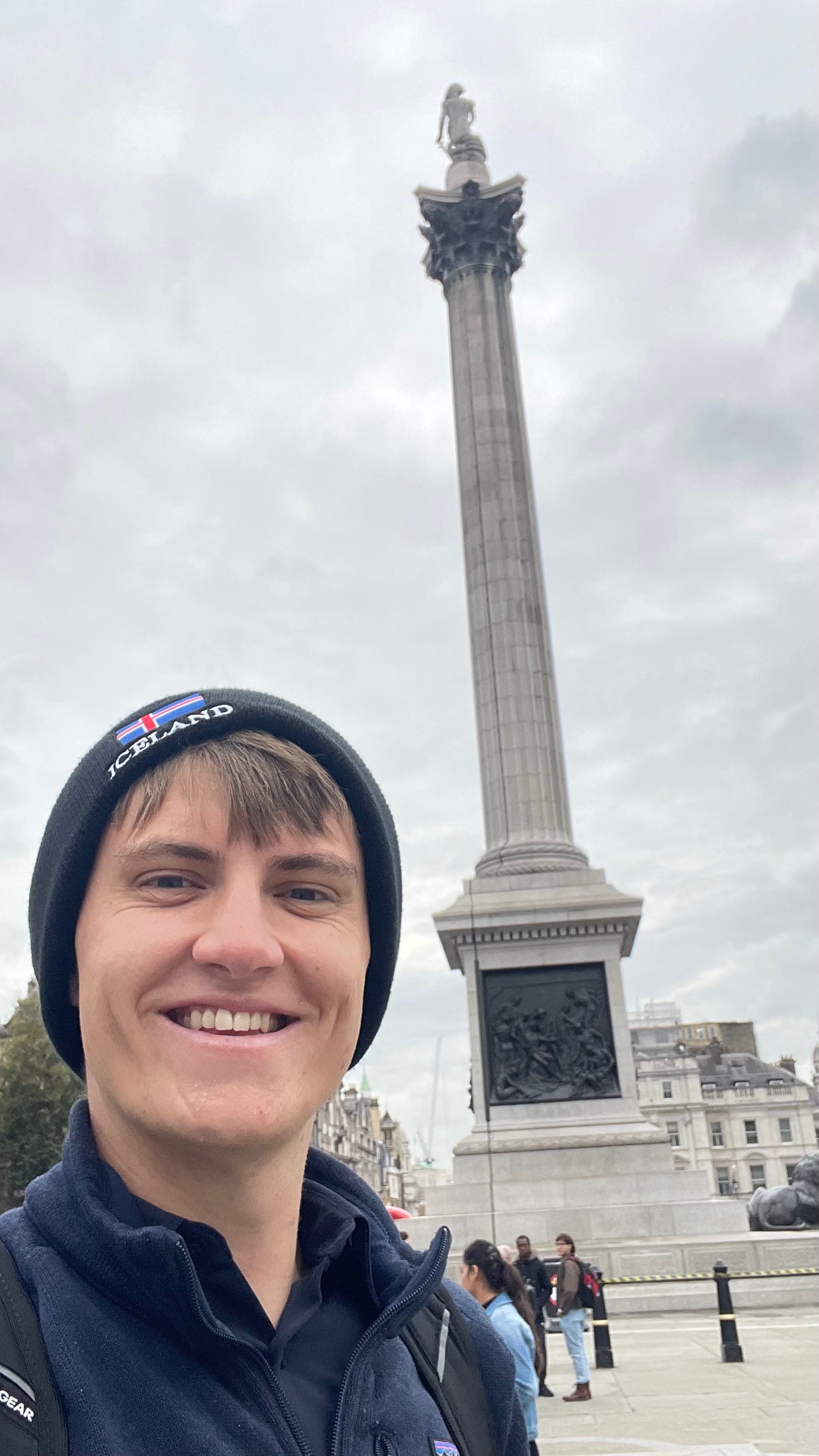 My last stop on the walk was at Trafalgar Square. There is a huge pillar commemorating Lord Admiral Nelson, who is the second most goated British person after Winston Churchill. He won the extremely famous Battle of Trafalgar, where the British fleet destroyed the Spanish and French ones, securing Britain as the leading naval power for the next 200 years. His death in that battle solidified his legend! It was awesome to see the pillar and the famous 4 lions around its base.